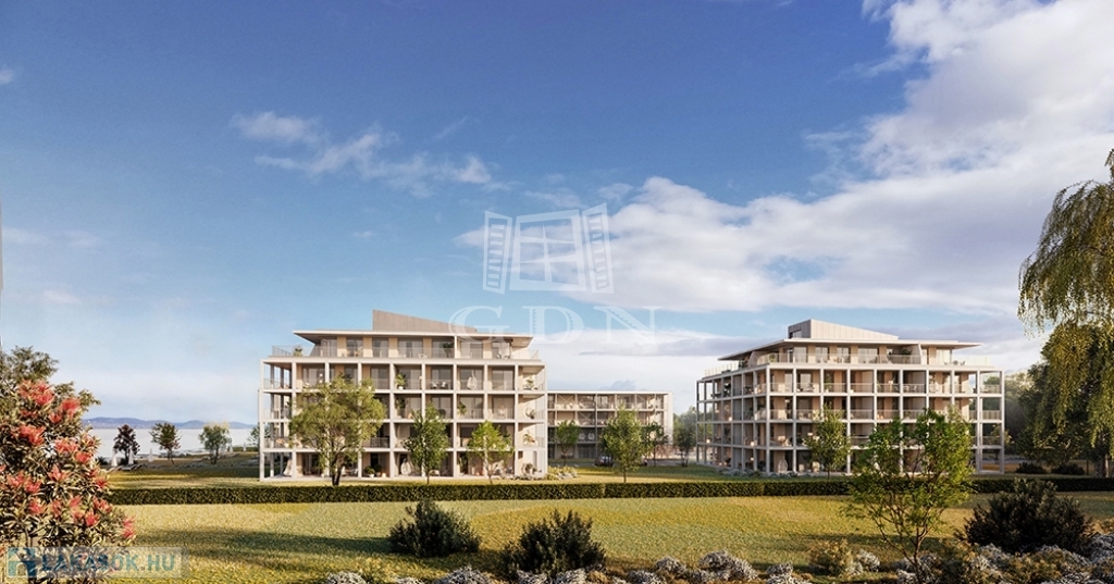 Balatonmáriafürdő központi részén, körbekerített parkosított telken, saját partszakasszal rendelkező lakóparkban, második emeleti,