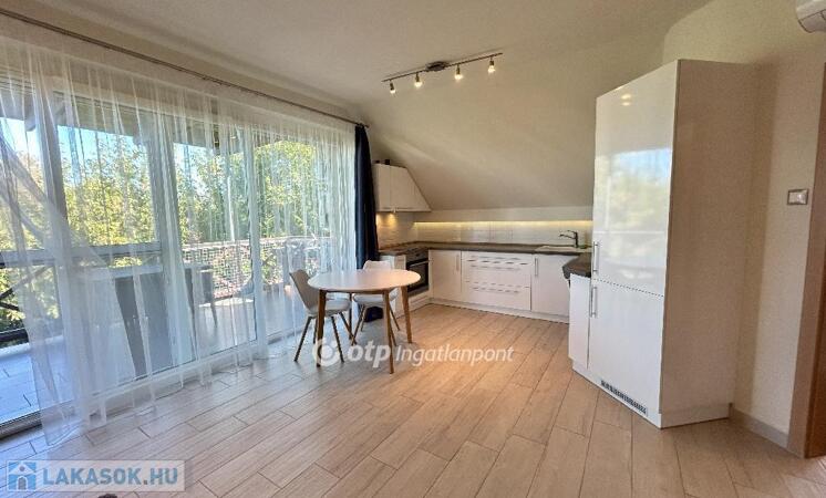 A helyiségeket minőségi burkolatok jellemzik: a hálószobákban laminált parketta, míg a többi helyiségben feszültségmentesítő réteggel ellátott kerámialap található. A tetőtéri ablakokon napelemes, távirányítós redőnyök biztosítják az árnyékolást, a műanyag nyílászárók pedig redőnnyel és szúnyoghálóval felszereltek. A lakás esztétikailag és műszakilag is kiváló állapotban van: új, falba süllyesztett vezetékek, energiatakarékos LED világítás, üvegszálas tapéta, beépített Geberit WC, valamint riasztórendszer távfelügyeleti csatlakozással garantálják a modern kényelmet. A lakáshoz kocsibeálló tartozik.