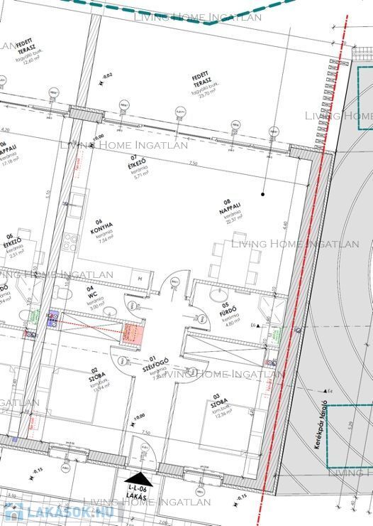 A lakásokhoz gépkocsi beálló vásárolható 3 M Ft-ért, ill. garázs 6 M Ft-ért.