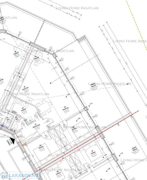 A lakásokhoz gépkocsi beálló vásárolható 3 M Ft-ért, ill. garázs 6 M Ft-ért.