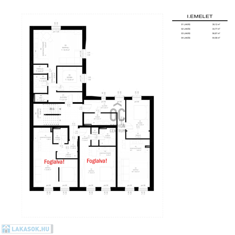 A hirdetésben szereplő 1. emeleti, lakás 57 m2-es.
