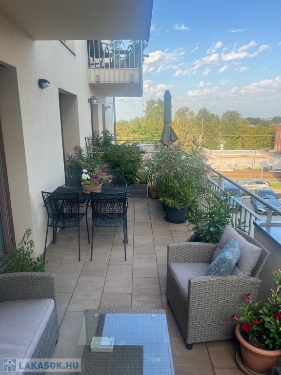 A lakás nettó 46 m²-es, amelyhez egy 16 m²-es, részben fedett, térkő burkolatú terasz tartozik. A terasz fele (8 m²) beleszámítható az alapterületbe, így a lakás összes hasznos mérete 52 m², ami megfelel az OTTHON START hitel feltételeinek.