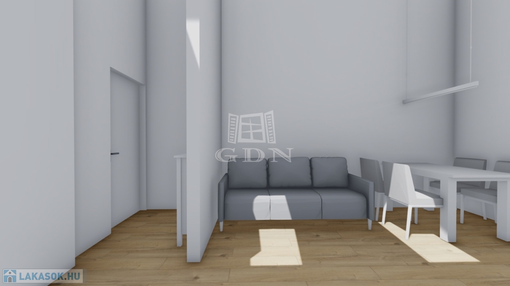 A "mintatervek" alapján egy nettó hasznos 42 m2 alapterületű lakás lenne kialakítva, amely nappali + hálószoba + gardrób + konyha + fürdőszoba helyiségekből állna.