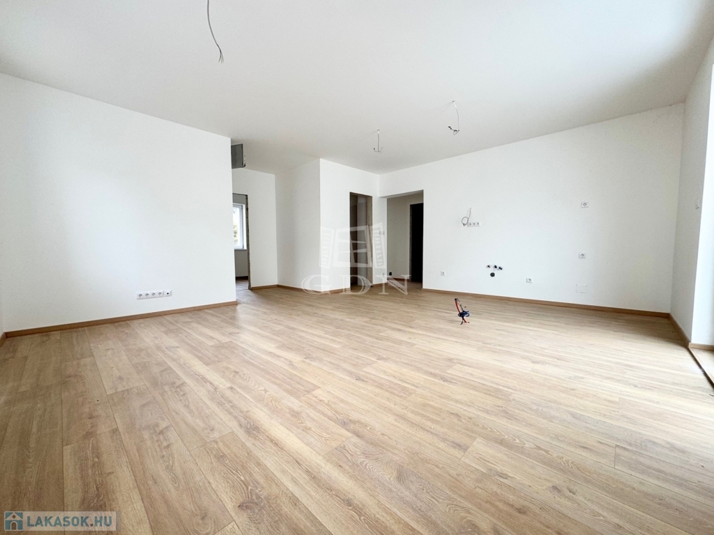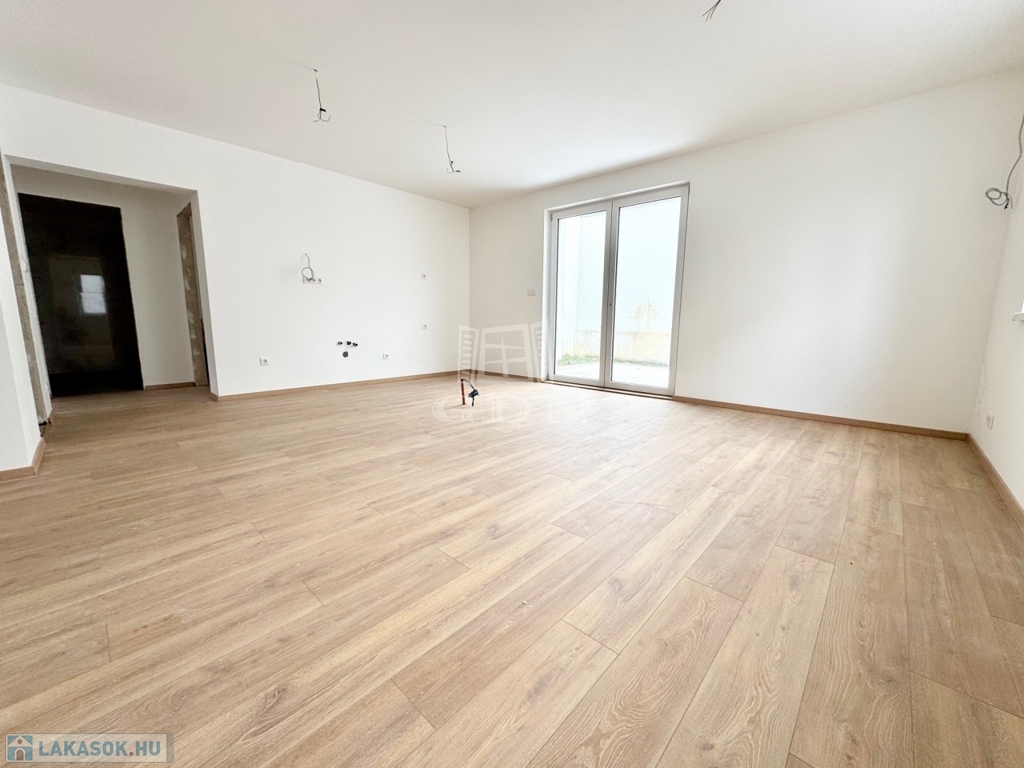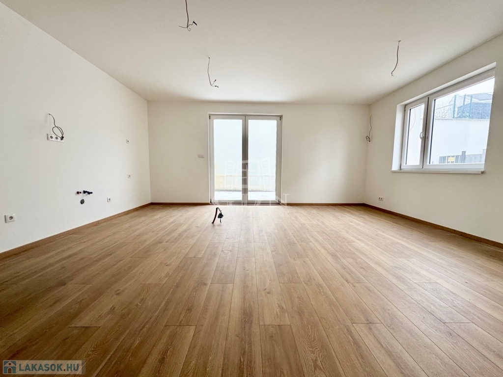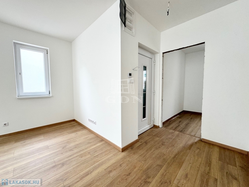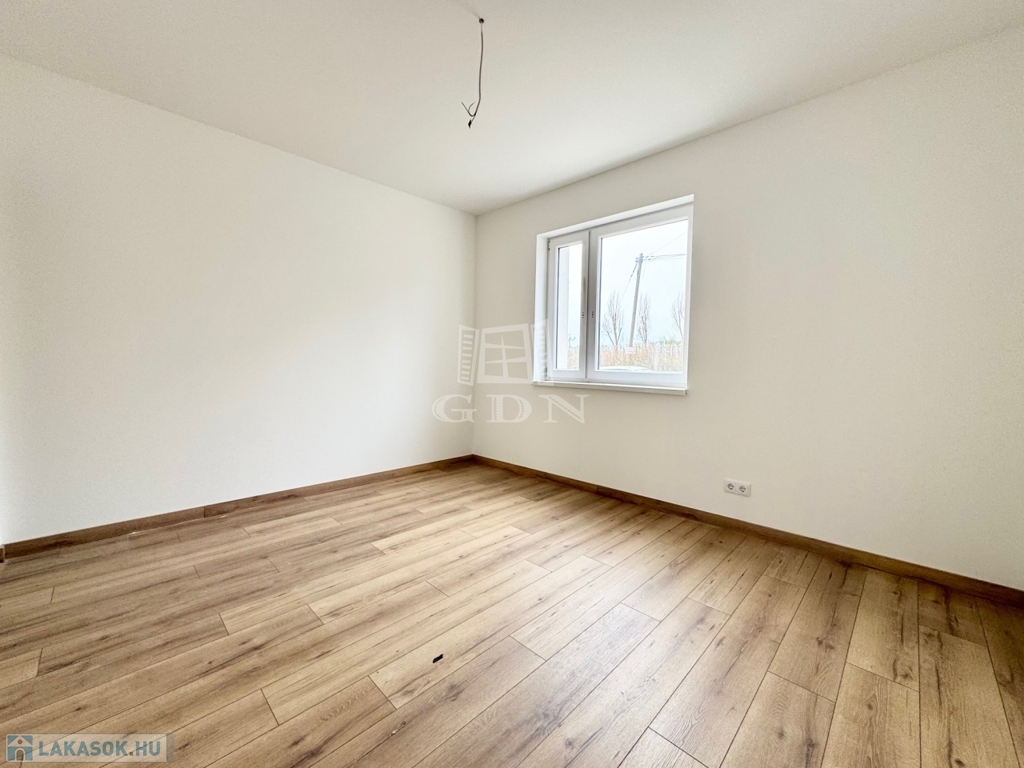 Az épület 38 cm-es Porotherm klímatéglából épült, melyre 10 cm-es dryvit szigetelés került. A nyílászárók dupla rétegű üvegezéssel ellátott ablakokkal és teraszajtókkal kerültek beépítésre. A lakásban a beltéri ajtók, világító testek és a konyhabútor kialakításra vár, melyet az új tulajdonos a saját igényeire szabhat.