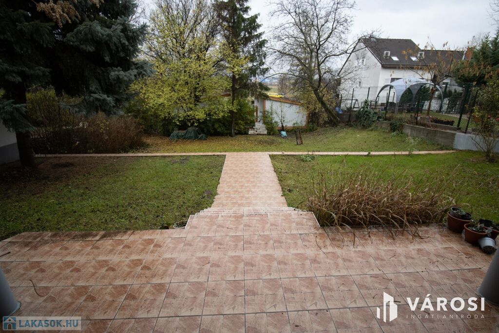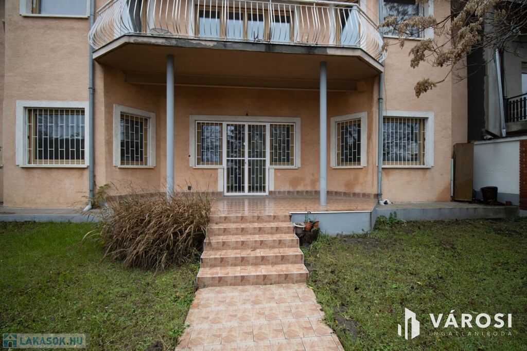 Az ingatlan elhelyezkedésének köszönhetöen, néhány lépcsőt lefelé kell menni a lakás megközelítéséhez, mivel az az alsó szint, de cserébe az egész kert, terasszal a lakáshoz tartozik kizárólagosan.