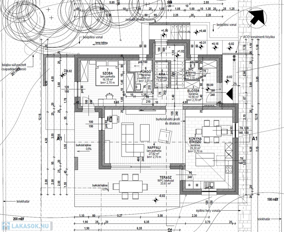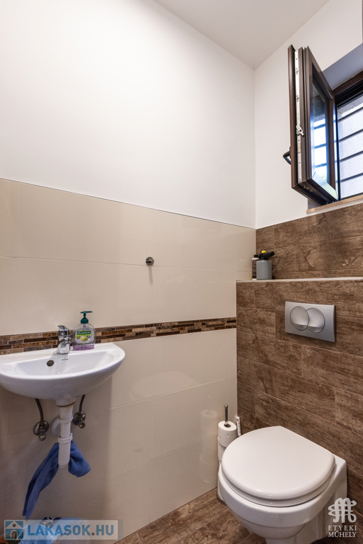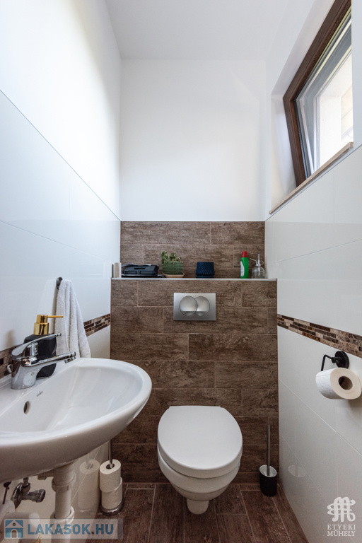 Tájolása tökéletes, reggeltől délutánig beragyog a nap. Az 51 m2-es nappaliba a hatalmas teraszajtóknak köszönhetően kora reggeltől délutánig besüt a nap. A nappaliból és a konyhából is közvetlenül kiléphetünk a 34 m2-es teraszra, ahol a család igazi kényelemben együtt élvezheti a jó levegőt, a kertet és madárcsicsergést. A földszinten található egy önálló fürdőszobával (wc, zuhany, kézmosó) rendelkező szoba, tároló, előszoba, wc és egy 51 m2-es amerikai konyhás nappali. A földszinti hálószoba kiválóan alkalmas vendégszobának, szülői hálónak, idős szülő számára, vagy akár irodának. A kert gondozásához nagy segítséget nyújt az automata öntözőrendszer, és a vízgyűjtő, ami a lehullott csapadékot tárolja az öntözésig.
