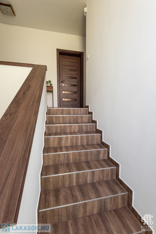 Az emeleten található hálószobákból kettő déli, egy délnyugati tájolású, erkélykapcsolattal. Az északi oldalon található zuhanyzóval, fürdőkáddal és dupla mosdóval rendelkező fürdőszoba, wc és egy háztartási helyiség. Ebben mosógépnek és szárítógépnek is elegendő hely van.