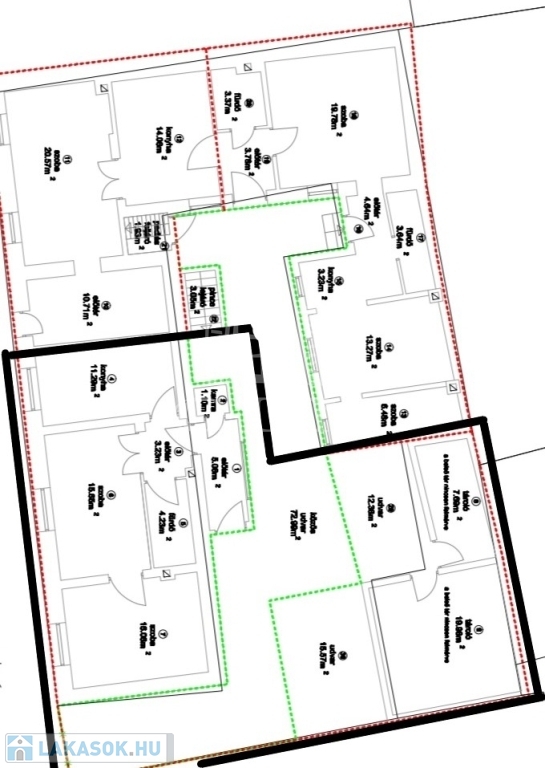 • Két külön lakóegység, összesen ~76 m² lakótér