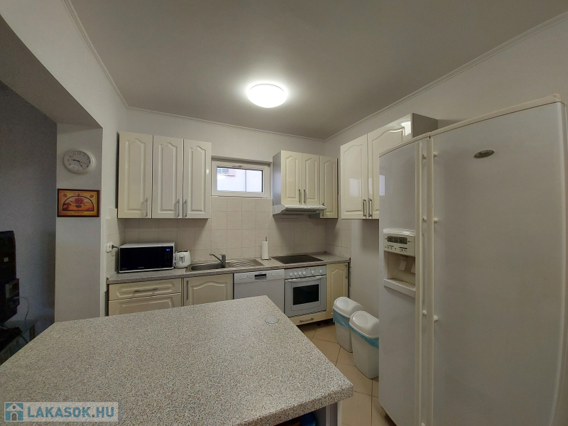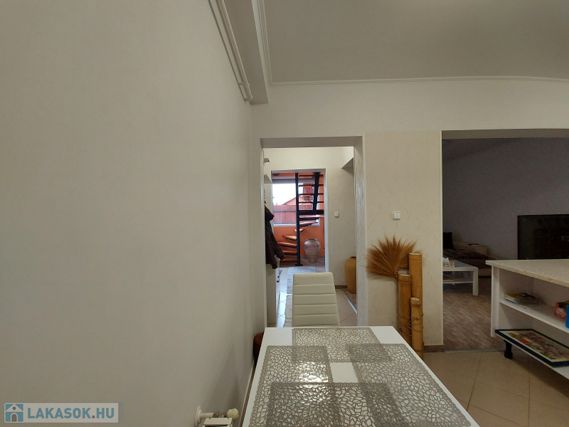 Extrák: tároló, terasz, kerthasználat, panoráma, alacsony fenntartási költség, amerikai konyha, beépített tetőtér, beépített szekrények, boltok a közelben, csendes környék, étkező, iskola a közelben, jó közlekedés, kaputelefon, WC, klíma, központi elhelyezkedés, melléképület, modern szigetelés, nappali, parketta, redőny, riasztó.