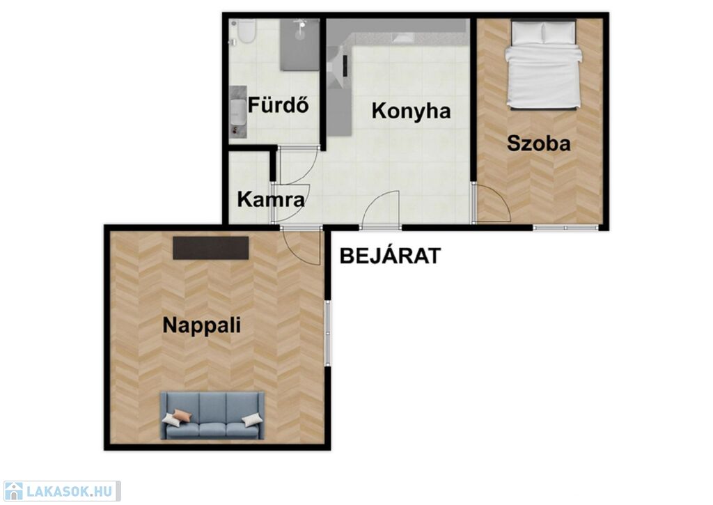 -51nm-es lakás(konyha, nappali, 1 lakószoba, fürdőszoba, gardrób)