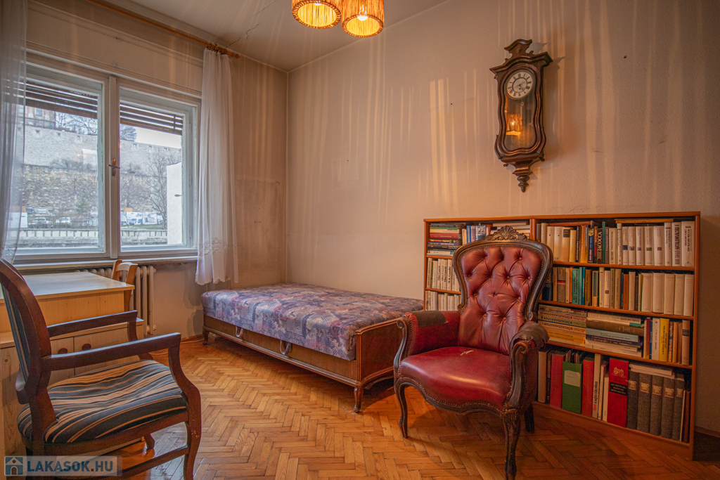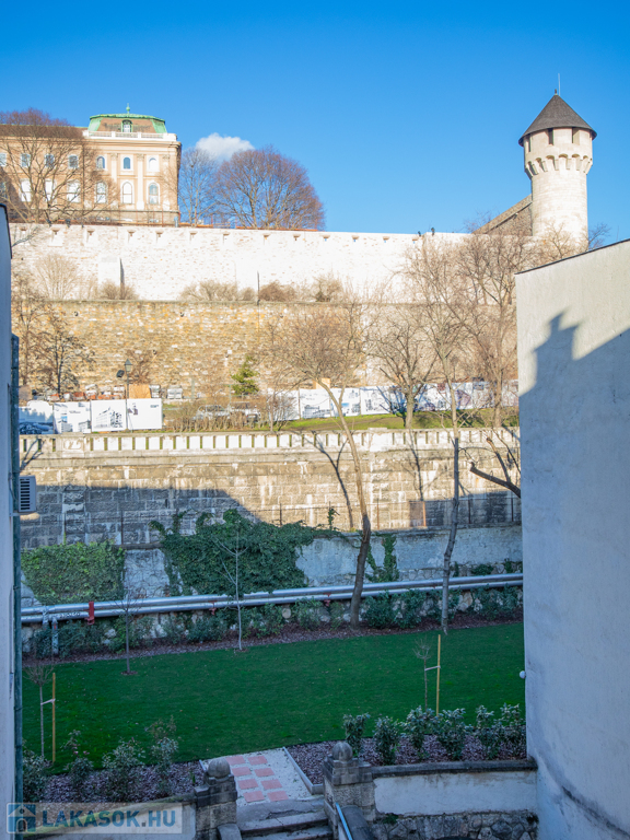 Eladó az I. kerületben a Tabánban, közvetlenül a Budai Vár lábánál a Dózsa György téren egy jó állapotú, liftes, gondozott nagy kerttel rendelkező társasházban lévő III. emeleti, 83nm-es, 3 szoba + konyhás, felújítandó állapotú, DNY-i fekvésű, klímás, napfényes lakás loggiával és szép kilátással a Naphegy illetve a Budai Vár irányába.
