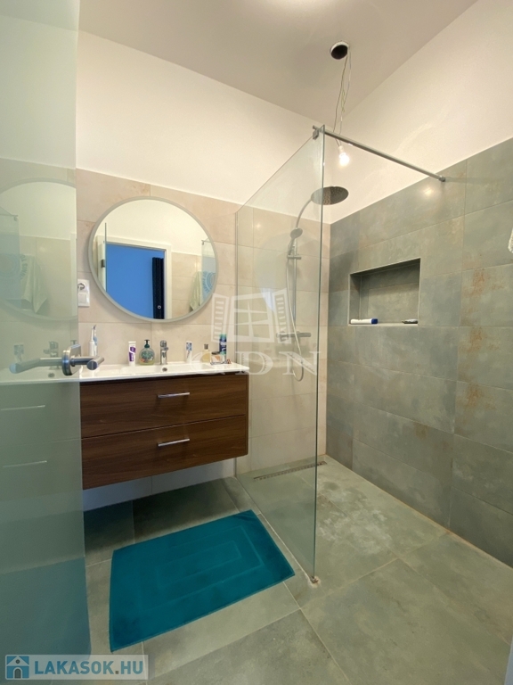 A tágas elrendezésű ingatlan három szobából, két elegáns fürdőszobából, valamint egy kényelmes gardróbszobából áll. A fűtést kombicirkó biztosítja, padlófűtéssel kiegészítve, a nyílászárók újak, a lakás minden helyisége kiváló állapotú.