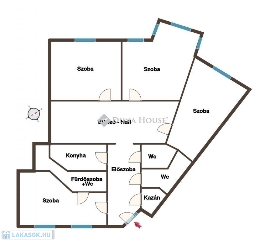 Az ingatlan 4 szoba, egy étkezőnek, várónak is kiválóan alkalmas hall, két külön wc, egy fürdőszoba+wc, egy előszoba, egy konyha, és egy kamrának is hasznosítható kazánház helyiségek találhatóak. A szobákban rendelőként való hasznosítás esetére külön mosdó, vizeskiállás is kilakításra került.