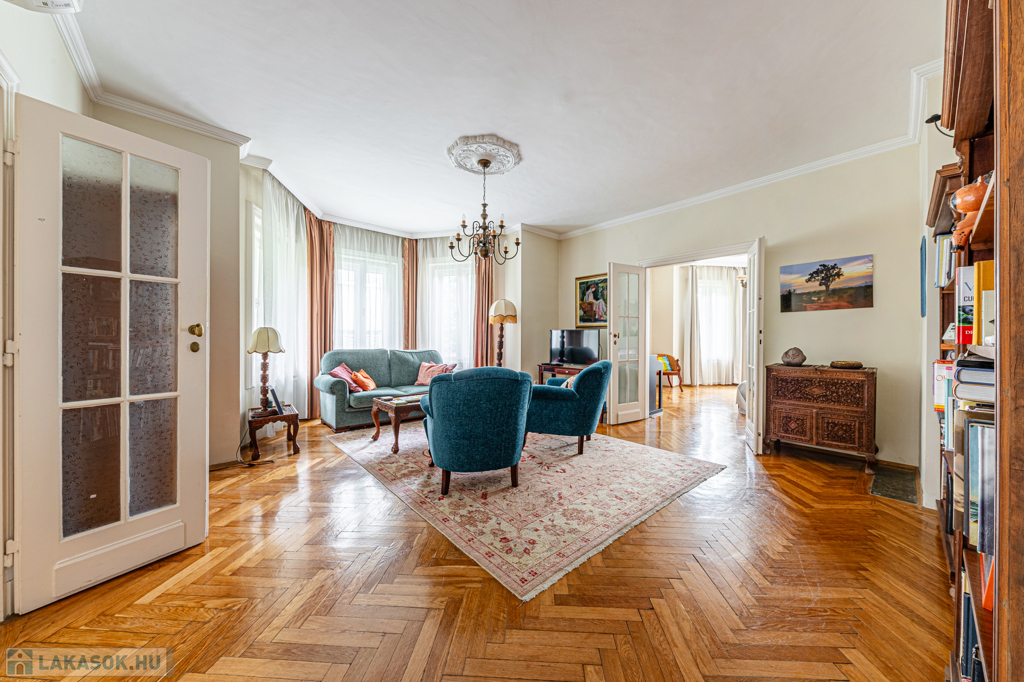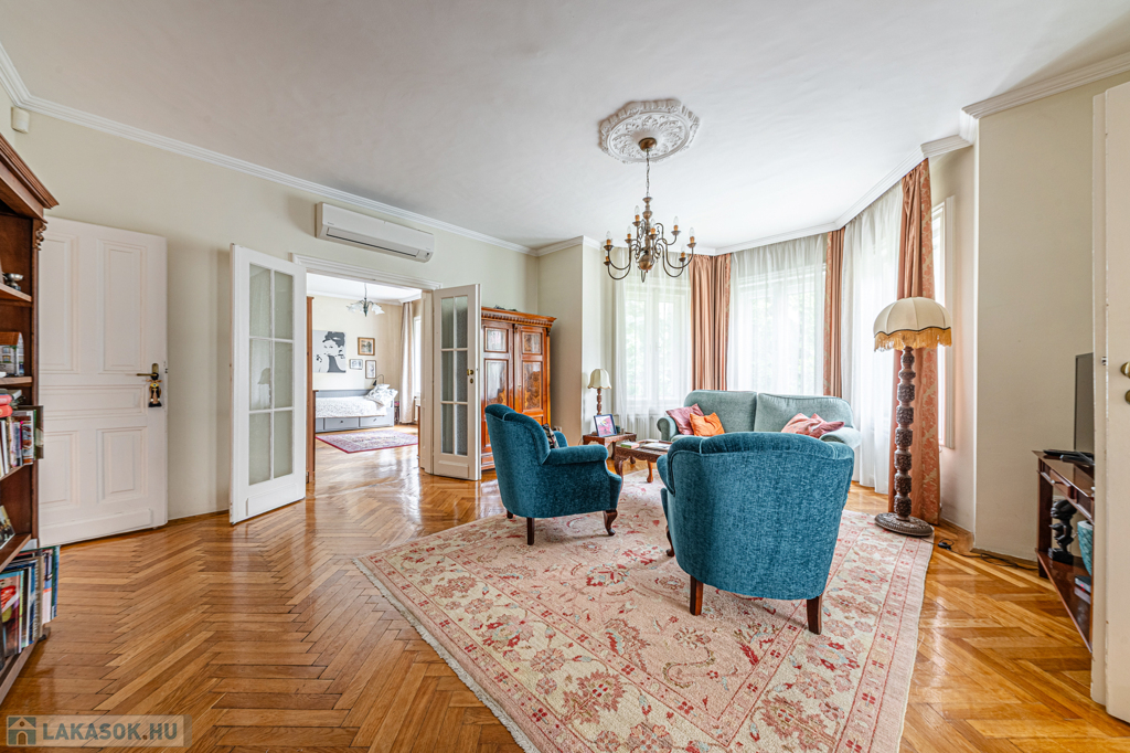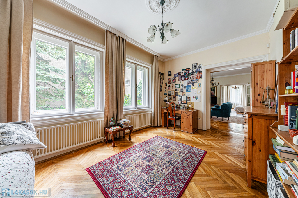 A villaépület másik, emeleti lakása is eladó (+tetőtér beépítési lehetőséggel), így egyben a teljes ingatlan tökéletes választás lehet akár többgenerációs családi rezidenciának a szeparálódás lehetőségével, vagy befektetési céllal - társaházként - lakásonként hasznosítva, ill. cégközpont, nagykövetség vagy magánklinika helyszíneként.