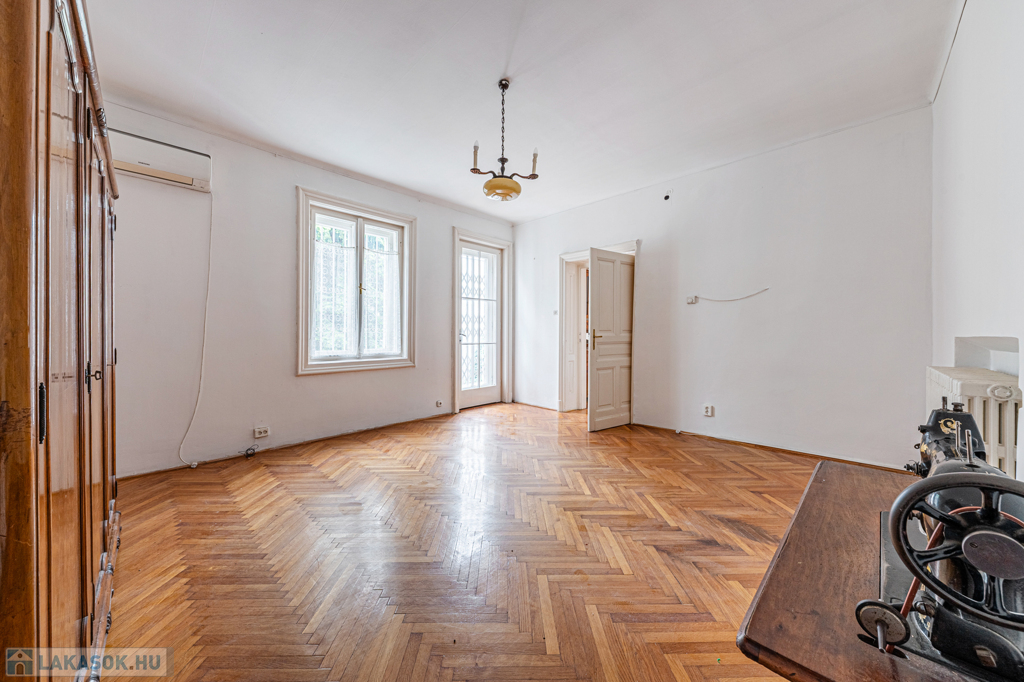 Az emeleten elhelyezkedő lakásba - egy kényelmes méretű fogadótérből induló - impozáns tömörfa lépcső vezet, helyiségeire jellemző a tágasság, a benapozottság, mindhárom jól bútorozható, tömörfa parkettás, klimatizált szobájából közvetlen kapcsolat nyílik a kellemes, délnyugati tájolású, 40 nm-es teraszra. Az eredeti külső- és beltéri tömörfa nyílászárókat megőrizték jó állapotukban, az ablakok, erkélyajtók zsalugáteres árnyékolása is gondoskodik a korabeli hangulatról. A lakás radiátoros fűtését gázkazán biztosítja. A 116 nm-es, nagyvonalú térelosztású lakáshoz tartozik a teljes lakóterülete feletti, ~100-nm-es, beépíthető tetőtér, lehetőséget nyújtva az élettér megnövelésére.