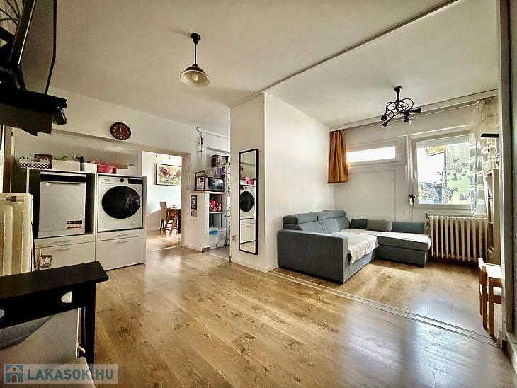 Eladásra kínálunk a II. kerület kedvelt részén, Vízivárosban egy 66 m²-es, háromszobás lakást egy 1971-ben épült, jó állapotú, rendezett, liftes társasház hatodik, egyben legfelső emeletén. Az ingatlan egyik legnagyobb előnye a csendes, nyitott környezet: a lakás a Ganz közre néz, így előtte tágas tér nyílik, nincs közvetlen szembenálló épület és a sok ablaknak köszönhetően kifejezetten világos.