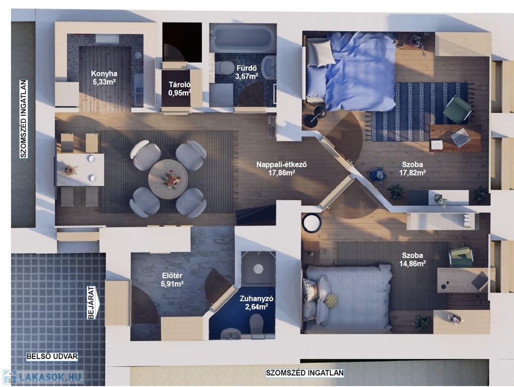 Két kisebb lakás kialakítására alkalmas