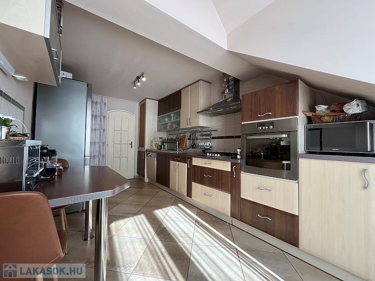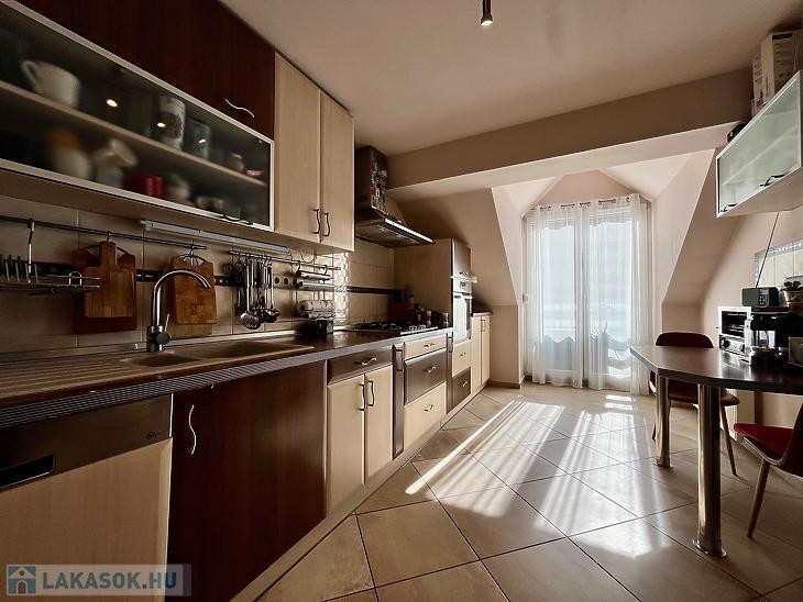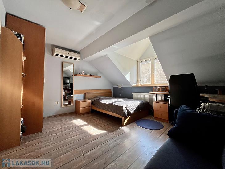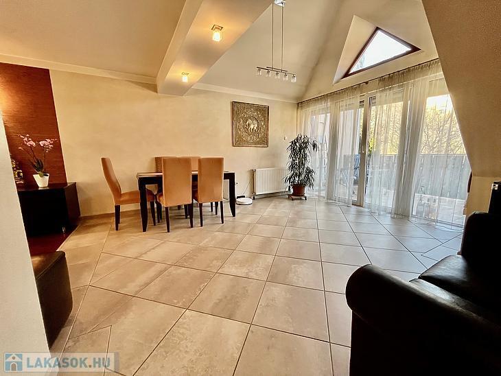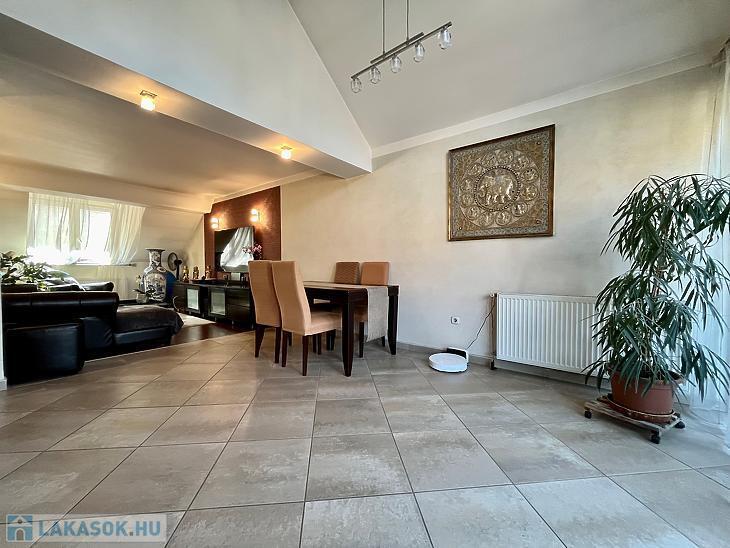 Az ingatlan egy két tulajdonossal rendelkező, négy lakásos házban található, használati megosztással. A lakás nettó 97 m² lakóterülettel, valamint 124 m² bruttó alapterülettel rendelkezik. A tulajdoni lap szerint az ingatlan 148 m², amelyhez egy kb. 100 m²-es, kizárólagos használatú kertrész is tartozik – ritka lehetőség ezen a környéken. További értéket képvisel a lakás felett végigfutó padlástér, amely tárolásra vagy akár további hasznosításra is alkalmas.