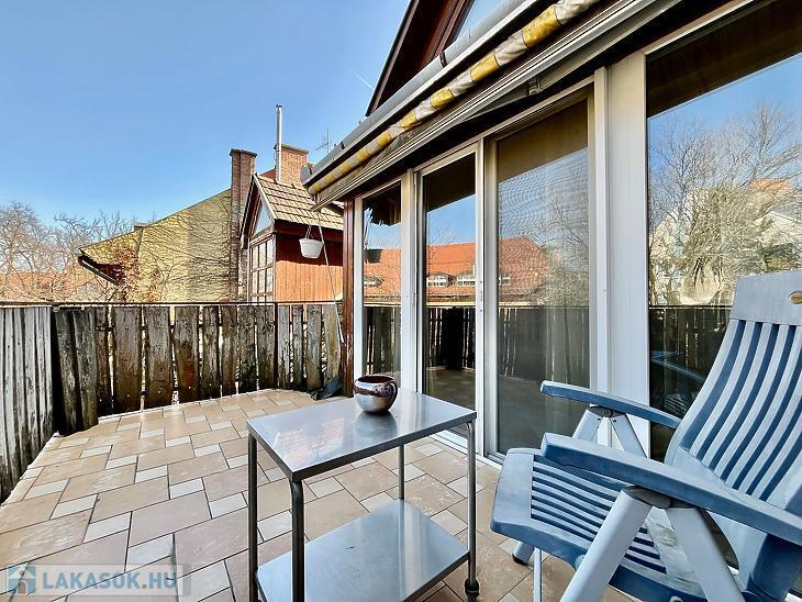 Budapest egyik legkedveltebb városrészében, a II. kerület Újlak részén kínálunk megvételre egy kivételes adottságokkal rendelkező tetőtéri lakást.