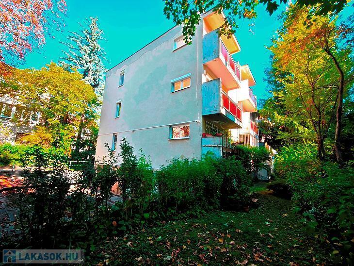 Hűvösvölgyi úton, közel a Szerb Antal utcához, egy parkosított területen található, az úttól távol eső társasházban, egy magasföldszinti, kertre néző, jó állapotú, jó elosztású, erkélyes, kertkapcsolatos lakás. A lakás minden helysége ablakos, a konyhában található egy kis étkezősarok, és egy ablakos kamra is. 2015-ben történt a teljes körű felújítás, beleértve a vezetékeket, és a fűtésrendszert, mely kombicirkó. A nappaliból nyíló loggia Dk-i tájolású, és oldalkert irányába néz, ahonnan egyből le tudunk menni a kertbe. Pincetároló és 1 autó számára kerten belüli gépkocsibeálló tartozik a lakáshoz. Ezenkívül tartozik egy 15nm-es garázs is a lakáshoz, melynek vételára +10M Ft.