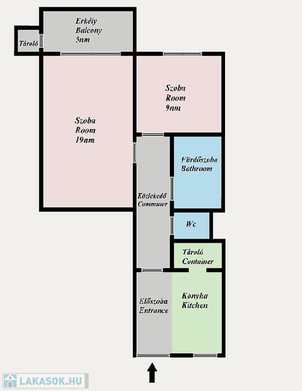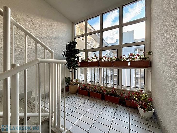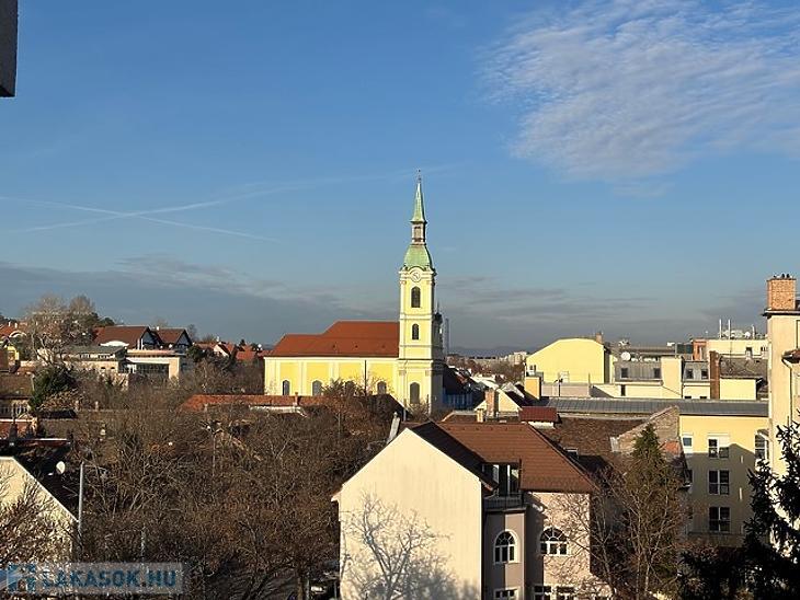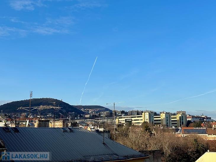 Az ingatlan elrendezése praktikus és kényelmes: két különnyíló szoba, konyha kamrával, fürdőszoba külön WC-vel, valamint egy 5 m²-es, nyugati fekvésű erkély tartozik hozzá, amely lenyűgöző panorámát nyújt a Hármashatár-hegyre.