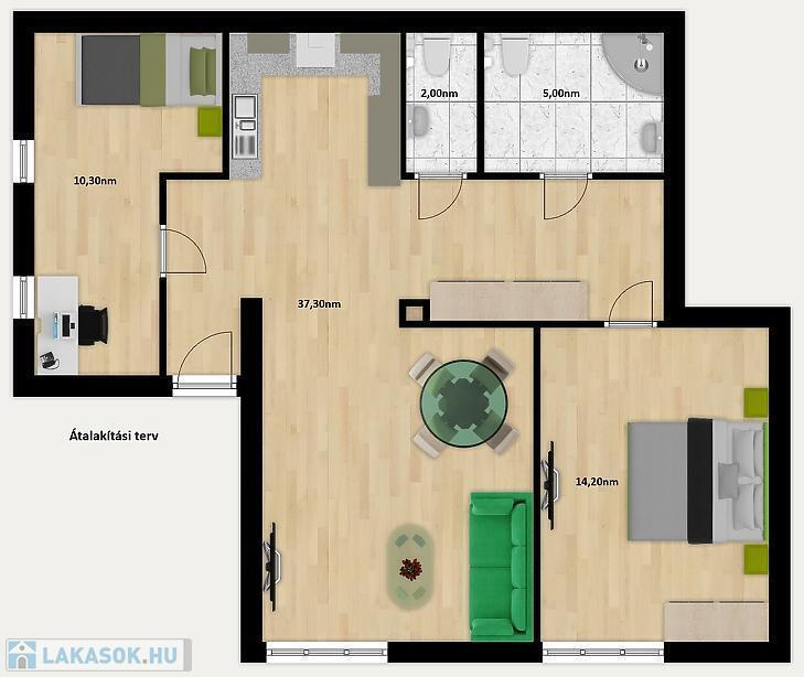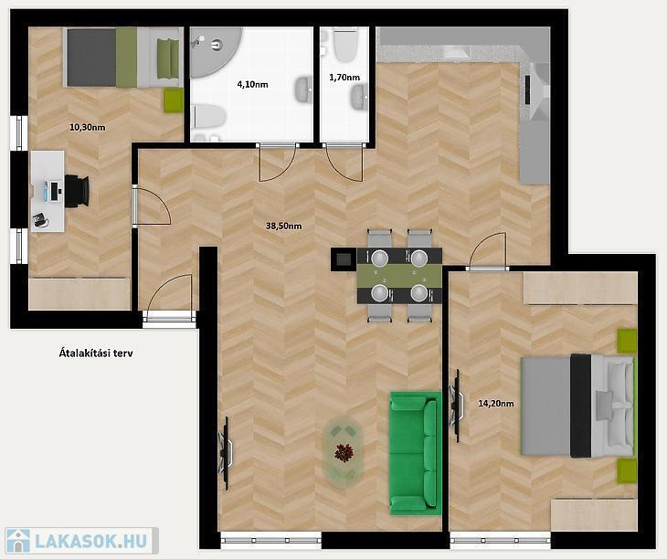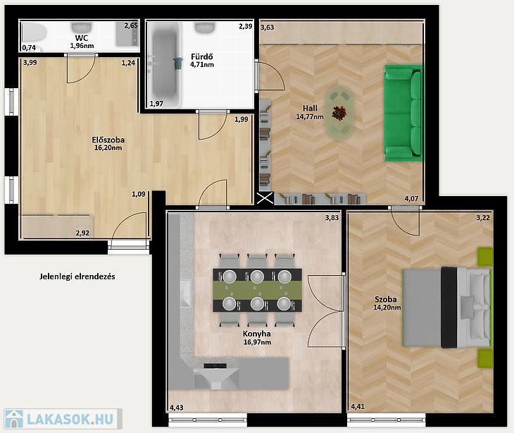 A lakáshoz tartozik egy saját, zárható 5,31nm-es tároló is, melyet a vételár tartalmaz. Kocsibeálló kialakítására a hátsó udvarban van lehetőség.
