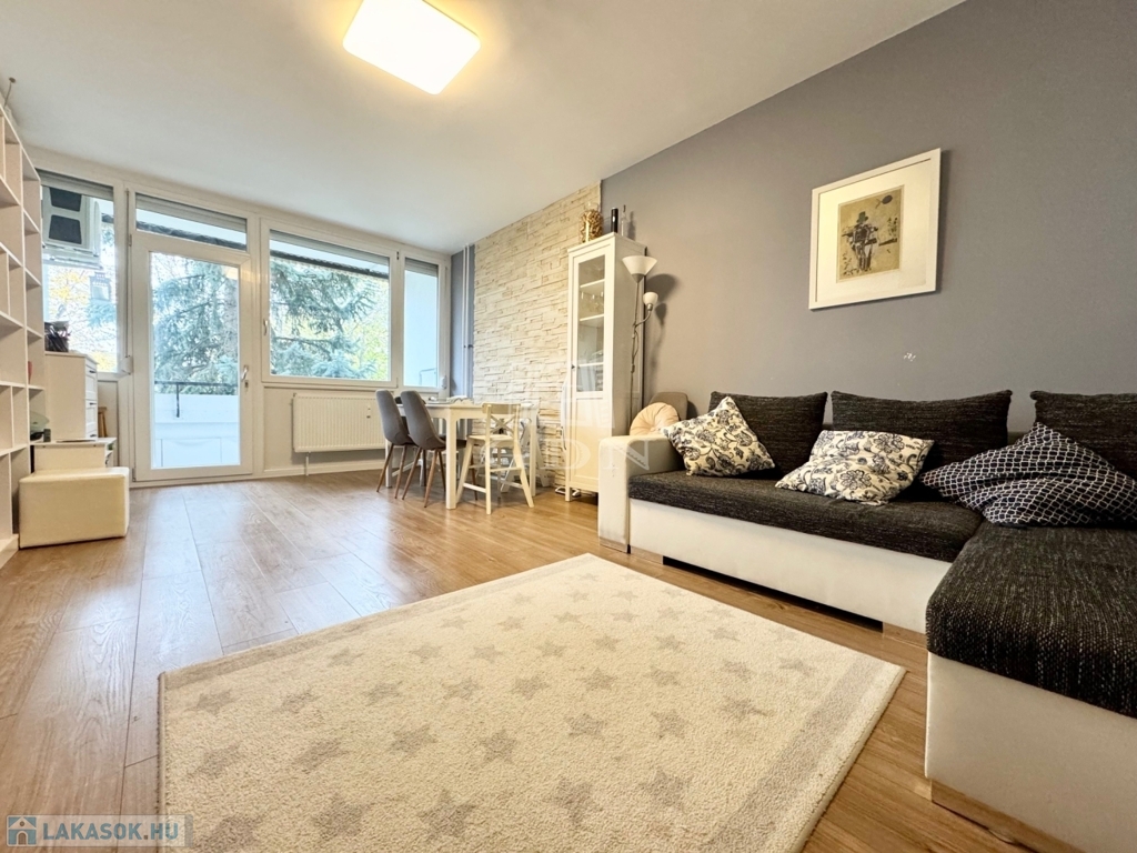 A lakásban a felújítás során: új külső- és belső nyílászárók, vízvezeték, burkolatok, beépített gépek, illetve praktikus és sok tárolási lehetőséget biztosító bútorok kerültek kialakításra.