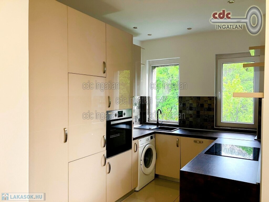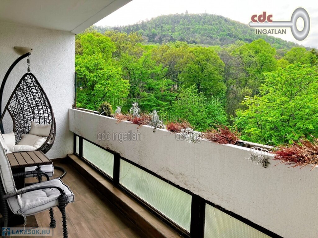 Megvételre kínálunk a II. kerületben, a Hárshegyen egy 70 m2-es, teljes körűen felújított, kelet-nyugati fekvésű, erkélyes lakást. Az ingatlan egyedik emeleti, három különnyíló szobája van, hihetetlenül világos, tágas, barátságos otthon. A konyha rendkívül praktikus, rengeteg tárolófelülettel rendelkezik, teljesen gépesített: mosógép, mosogatógép, sütő, indukciós főzőlap, hűtőszekrény és fagyasztó tartozik hozzá. A 8 m2-es teraszról gyönyörű kilátás nyílik az Erzsébet kilátóra és a környező erdőre. Minden szobából zöldre látni, a nappali nyugati fekvésű, a hatalmas háló keleti. A lakás házközponti fűtéses. A háztetőn lévő 300 m2-es, közös használatú teraszról mesés körpanoráma nyílik a városra és a természetre. A házhoz tartozik egy közös kert, parkolni ingyenesen az épület előtti parkolóban lehet. A 22-es, 222-es, 22A buszok a közelben állnak meg.
