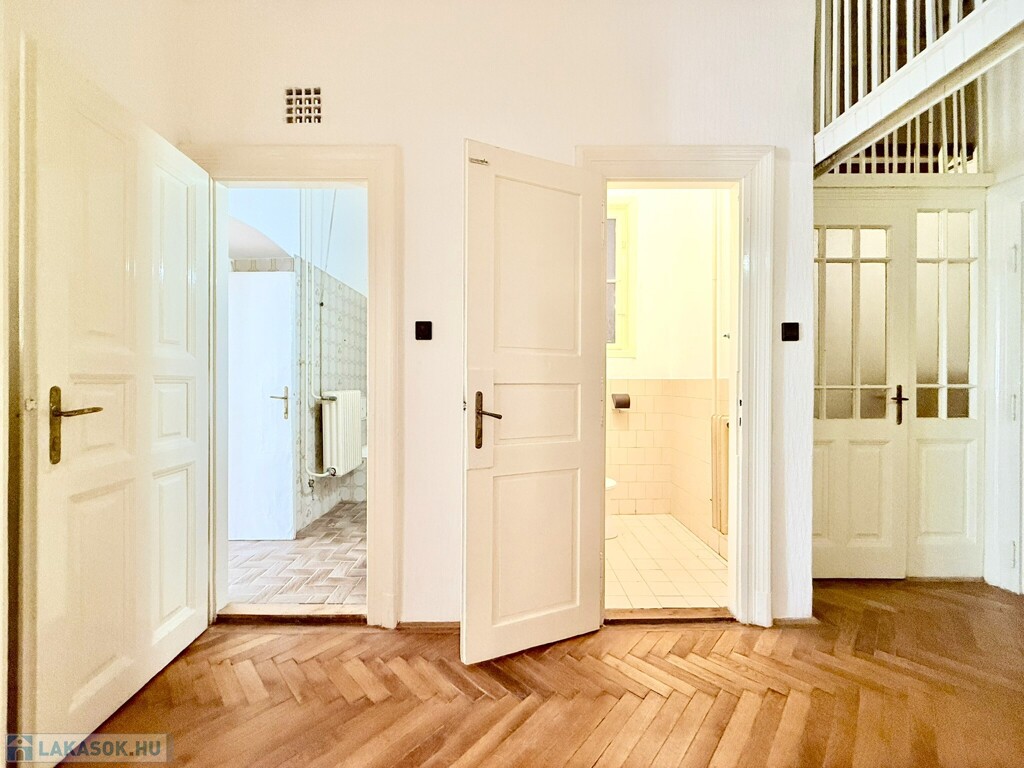 Az eredeti faparkettája, a nagyméretű, fa spaletta árnyékolókkal rendelkező ablakai, eredeti kilincsei mind harmóniában vannak, így az esztétikai felújítás után egy korhű ám mégis modern otthon varázsolható belőle.