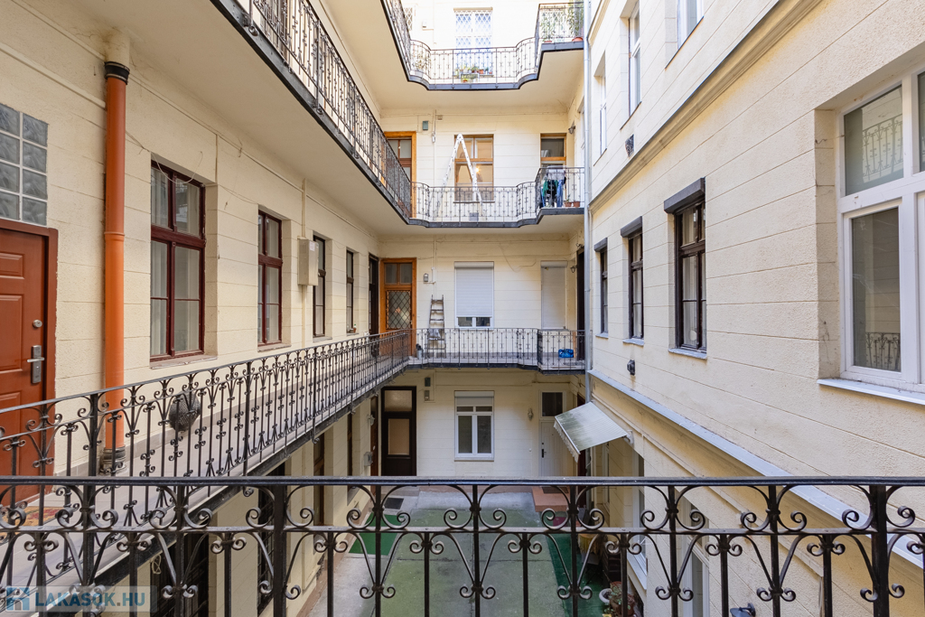 A villa hangulatú belső elrendezés és a villalakásokra jellemző stílusjegyeket hordozó ingatlan (kastélyparketta, nagy belmagasság, elegáns térkihasználás, tágas terek) az épület udvarából külön bejárattal rendelkezik, de az utca irányából első emelet magasságában található.