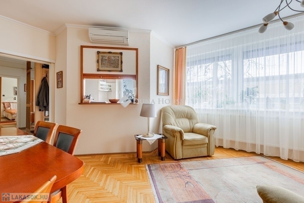 Eladó a II.kerületben, a közkedvelt Apostol utcában egy 66 m2-es, nappali+2 hálószobás, jó állapotban lévő, csendes, kertre néző, napfényes lakás 9 lakásos rendezett társasházban, garázzsal, tárolóval.