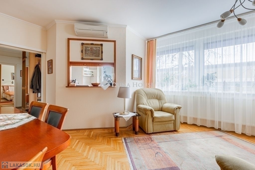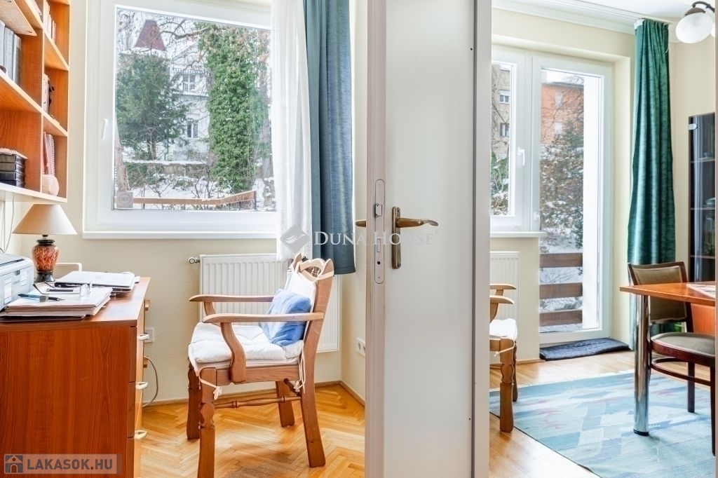 Eladó a II.kerületben, a közkedvelt Apostol utcában egy 66 m2-es, nappali+2 hálószobás, jó állapotban lévő, csendes, kertre néző, napfényes lakás 9 lakásos rendezett társasházban, garázzsal, tárolóval.Az ingatlan cirkófűtéses (3 éves új kazán), műanyag nyílászárókkal rendelkezik, klímával felszerelt. A lokáció zseniális; csendes, nyugodt utca, de mellette kiváló infrastruktúra jellemzi: tömegközlekedési, bevásárlási lehetőségek, iskolák, óvodák a közelben.Irányár: 135.000.000 Ft., a garázs és a tároló együttesen további 15.000.0000 Ft.-ért kötelezően megvásárolandóak.