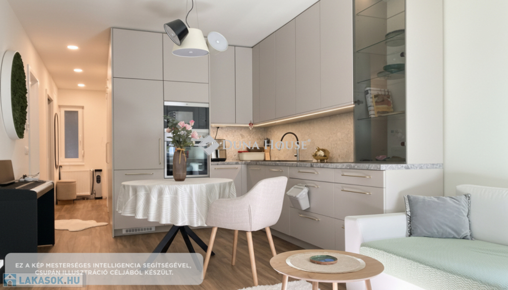 Ez az otthon fiatal pároknak, kisgyermekes családoknak, vagy idősebbeknek is ideális választás: kényelmes, lépcsőzésmentes, napfényes, és minden részletében harmóniát sugároz.Világos, praktikus és elegáns egy otthon, amit élni terveztek, nem csak használni.