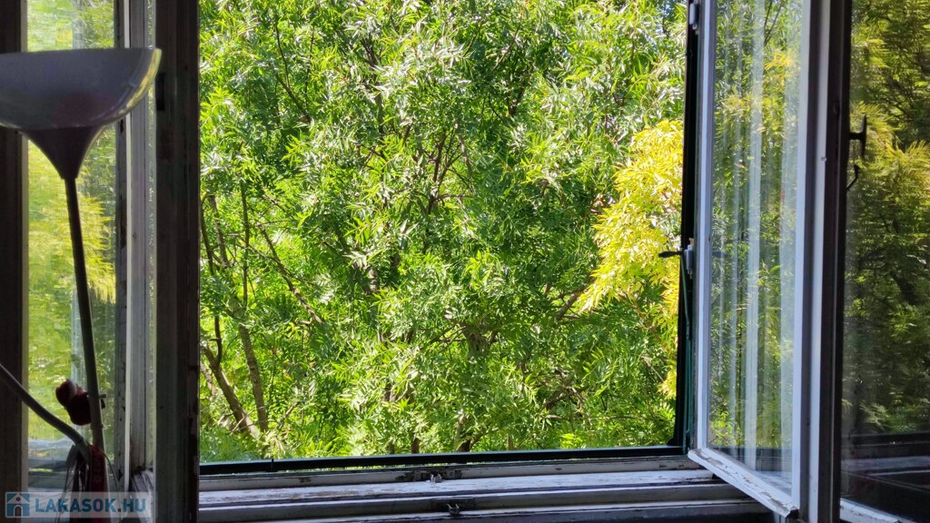 A délkeleti-délnyugati fekvésű, NAPFÉNYES lakás ablakaiból gyönyörű kilátás nyílik a zöld környezetre. Az ablakok elektromosan mozgatható faredőnyökkel felszereltek.