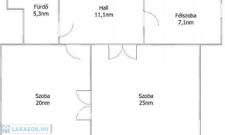 A két KÜLÖN BEJÁRATÚ nagy szoba dupla szárnyú ajtóval össze is nyitható.