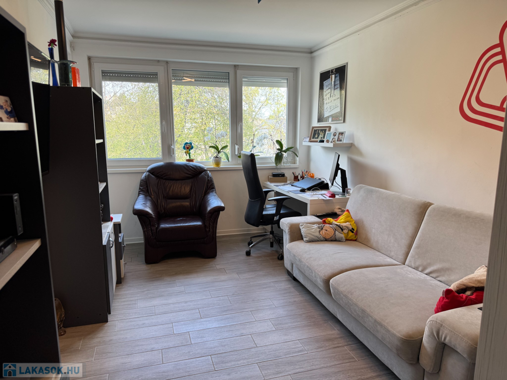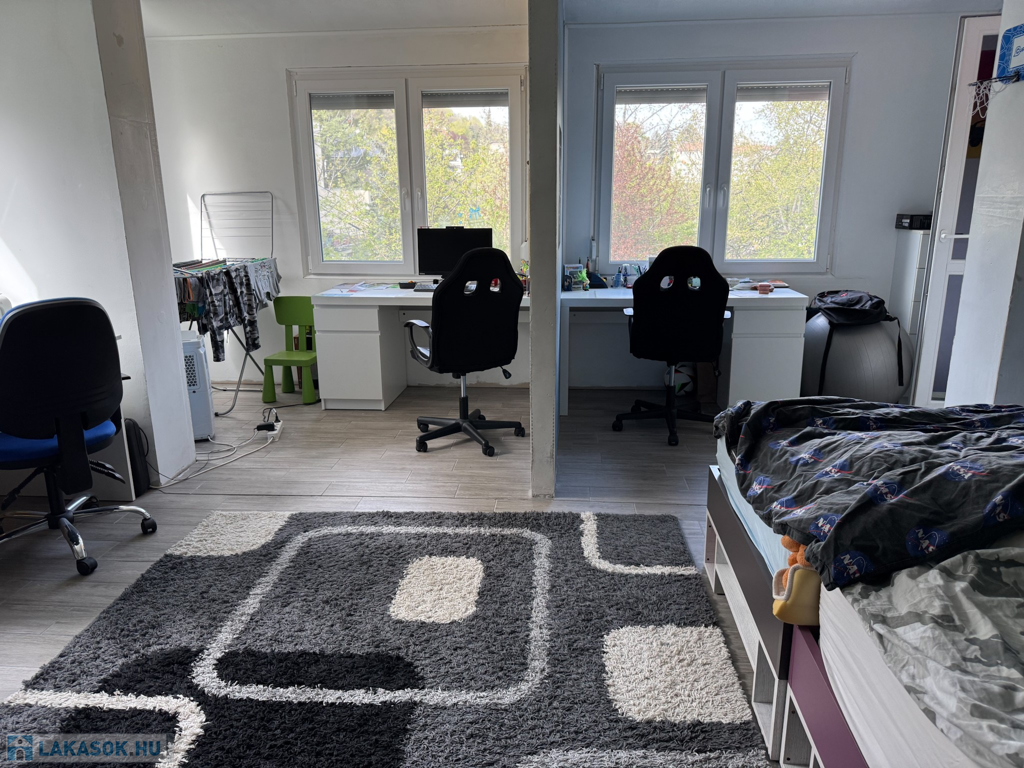 Minden szoba külön bejáratú, jelenleg 2 szoba egybe van nyitva. Az erkély beépítésre került, így bővítve a hasznos lakóteret, de igény esetén visszaállítható.