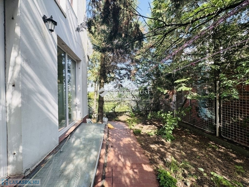 PANORÁMÁS, 4 SZOBÁS LAKÁSTERASZOKKAL,SAJÁT KERTRÉSSZEL ELADÓ!Adyliget panorámás, sík utcájában,1991-ben 820 nm-es kertben épült kétlakásos ház földszintjén116 nm-es, amerikai konyhás nappali + 3 szobás lakás 2 fürdővel, 3 terasszal eladó.Fűtése gázüzemű cirkókazánnal történik, padlófűtéssel, a hálószobákban radiátor hőleadókkal.A lakás bejárata a kertből nyílik.Napfényes, 4 égtáj felé tájolt, ablakai a saját kertre, hegyekre panorámásak.A nagyobb fürdőben kád és zuhanyozó, a kisebb fürdőben zuhanyozó és mosókonyha található.A lakásból belső lépcsőn közelíthető meg a 84 nm-es, angolaknás, több helyiségből álló alagsor,2 zuhanyzós fürdővel, kazánházzal.A parkolás az utcán ingyenes.A környék ellátottsága kitűnő, sétatávolságra orvosi rendelő, állatorvosi rendelő, élelmiszerbolt, játszótér,angol nyelvű óvoda található,a közelben SPAR, LIDL, CBA, DM, éttermek, bankok, posta, fitness termek, uszoda, sportpálya, kultúrkúria,magyar és német nemzetiségi iskola, gimnázium,az amerikai, francia és spanyol iskola 7-10 perc autóval.63-as, 157-es buszokkal 5 perc a Hűvösvölgy végállomás,ahonnan buszokkal, villamosokkal a Széll Kálmán tér 17 perc alatt elérhető.