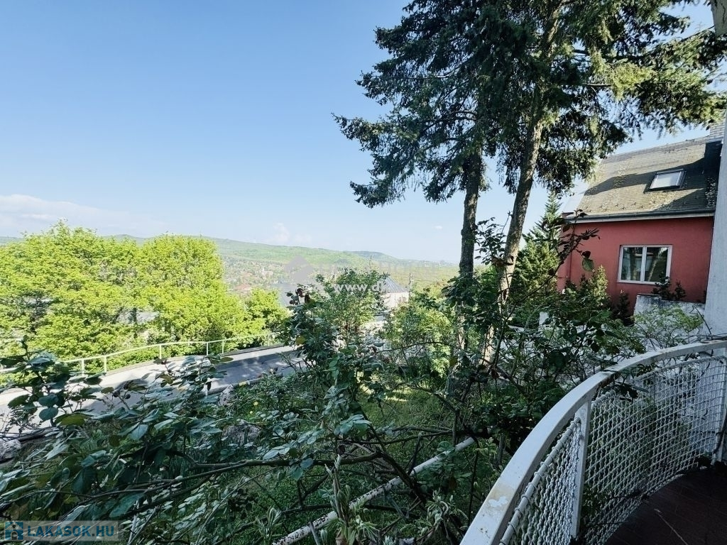 A lakás bejárata a kertből nyílik. Napfényes, 4 égtáj felé tájolt, ablakai a saját kertre, hegyekre panorámásak. A nagyobb fürdőben kád és zuhanyozó, a kisebb fürdőben zuhanyozó és mosókonyha található. A lakásból belső lépcsőn közelíthető meg a 84 m2-es, angolaknás, több helyiségből álló alagsor, 2 zuhanyzós fürdővel, kazánházzal. A parkolás az utcán ingyenes.