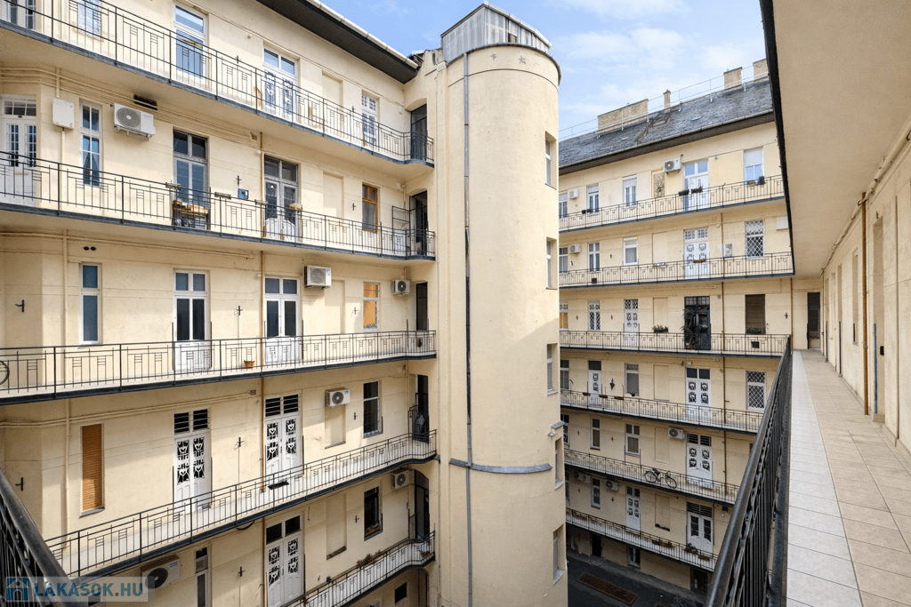 Az ingatlan egy rendezett, 5 szintes, liftes társasház 3. emeletén helyezkedik el. Jelenlegi kialakítása szerint 3 szobás, erkélyes lakás. Két szoba utcára néz, míg a konyha és a kisebbik szoba csendes belső udvari tájolású, ami ideális arányt teremt a világosság és a nyugalom között.