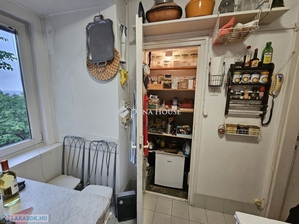 DUNÁRA NÉZŐ PANORÁMÁVAL rendelkező, különleges lakás eladó Rózsadombon!Az 1935-ben épült VILLAÉPÜLET 2. emeletén, a legfelső szinten (de nem tetőtérben!) található ez a - tulajdoni lap szerint 77, a valóságban - 82 négyzetméteres hatalmas nappali + 3 hálószobás lakás. Maga a lakás az 1970-es években került kialakításra és ezen az emeleten nincs is több lakás.A tágas, világos nappaliban található 3 különleges, beépített erkély-szerű építészeti struktúra, amik olvasósarokká, vagy mini télikertekké alakíthatóak. Ebben a helyiségben 3 nagy ablak található, amelyekből csodás a kilátás! A bájos kis konyhából pedig egyenesen a Dunára lehet lelátni a Parlamenttel a háttérben. Még a fürdőszoba ablaka is a csendes, zöld környékre néz!A három hálószoba az utca felé néz, de egyáltalán nem zajos egyrészt azért, mert a kerítéstől jóval beljebb helyezkedik el az épület, másrészt mert egészen kicsi az utca autóforglama. A külön nyíló 3 hálószobát rusztikus tartógerendák teszik még hangulatosabbá.Egy szép, fákkal teli, közös belső kerttel is rendelkezik a ház!Parkolás az utcán megoldható, szabad helyek mindig vannak.A környéken jár a 191-es busz, de gyalog negyed órára már a 17/19/41-es villamosokra is felszállhatunk, amikkel hamar a Széll Kálmán térre, Déli pályaudvarra érhetünk.