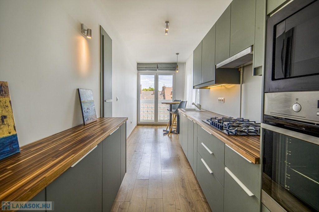 Az ingatlan felújítása mindenre kiterjedő volt: az összes vezeték, cső és nyílászáró, burkolatok, szekrények és konyha is cserélve lett, a hálószobák redőnyösek, a déli fekvésű nappaliban sötétítőfüggöny található. A konyha mosogatógéppel szerelt, a hűtőnek saját vízkiállás lett kialakítva a jégkockakészítéshez és a hidegvízhez.