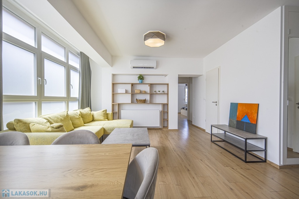 A közös költség fűtéssel, felújítási alappal, valamint lakószámra lebontva hideg- és melegvízzel együtt 52 600 Ft - ezen kívül tehát csak a villanyt kell külön fizetni rezsi tekintetében. A társasház fűtése házközponti, a radiátorok thermófejjel szereltek, így szabályozhatóak. A nappali és a nagyobb háló klimatizált.