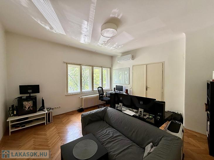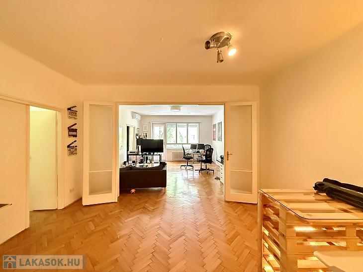 A II. kerület egyik legkedveltebb részén, a Bimbó út Buday László utcához közeli szakaszán eladó egy 1930-as években épült, patinás társasházban található 113 négyzetméteres, nappali + hall + 2,5 szobás lakás.