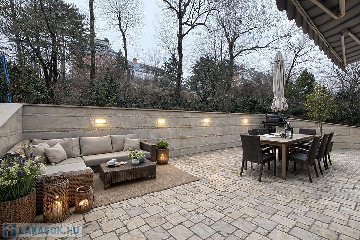 A lakáshoz 66 m²-es, kizárólagos használatú terasz és saját kertkapcsolat tartozik, amely ideális lehet kültéri étkező kialakítására, pihenő- vagy napozóhelynek, jelentősen megnövelve a lakás életterét. A lakás beépített bútorokkal felszerelt, így azonnal beköltözhető.
