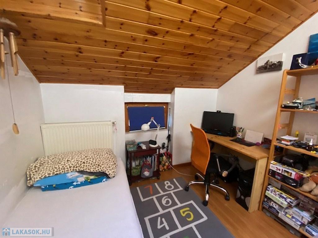 Az emeleten egy 12 nm-es hálószoba, kb 12 nm-es közlekedő és egy 6 nm-es fürdő kapott helyet.