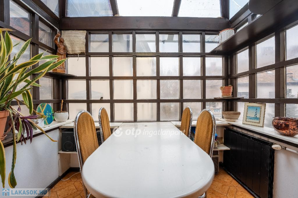 A 175 nm-es, belső kétszintes lakás jelenleg is jó beosztású. Világos és csendes, nagyvonalú terekkel rendelkező, jelenleg 3,5 szobás otthon. Jó alaprajzának köszönhetően több átalakítási lehetőség is rejlik a lakásban, amely amerikai konyhás nappali + 3-4 hálószobás lakássá is alakítható. Az ablakok a ház szép és csendes kertje felé néznek, DNY-i és ÉK-i tájolásúak. Az ingatlan egy 35 nm-es panorámás, tetőtéri terasszal rendelkezik, amely felújítás után az ingatlan egyik ékessége lesz.