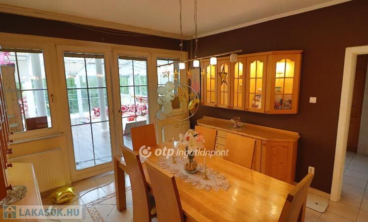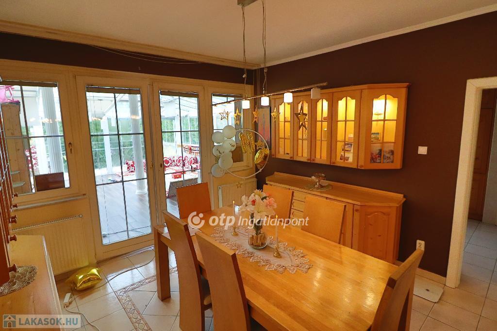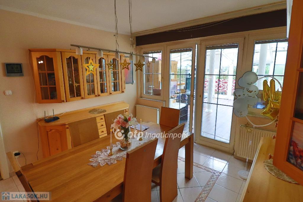 A békés kertvárosi zöldövezetben elhelyezkedő 1. emeleti 4 szobás lakás dupla nappalival, tágas tömör fenyőfa konyha-étkezővel, három hálószobával, nagyméretű fürdőszobával (fürdőkáddal és zuhanyzóval), külön WC-vel és tárolóval rendelkezik. Az ingatlanhoz tartozik egy 50 nm-es télikert, finn szaunával, egy 20 nm-es terasz és egy 8 nm-es fedett erkély. A lakás azonnal költözhető, igényesen bútorozott, gépesített, szép állapotú.