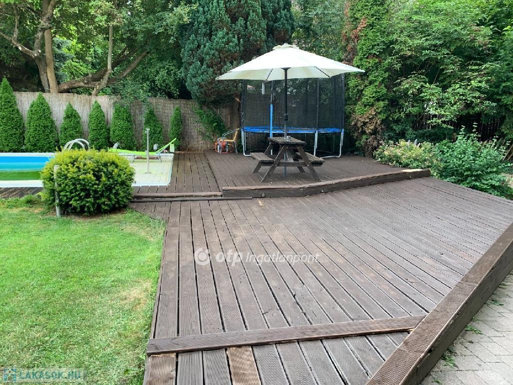 Az 1077 nm-es telken - fenyők, gyümölcsfák, tuják, cserjék gyűrűjében - kíváncsi szemektől elzárva, rendezett közös kertben pihenhetjük ki egy hosszú nap fáradalmait. A szintén közös használatú 8x4 méteres fedhető medence is az új tulajdonosok kényelmét és kikapcsolódását biztosítja.