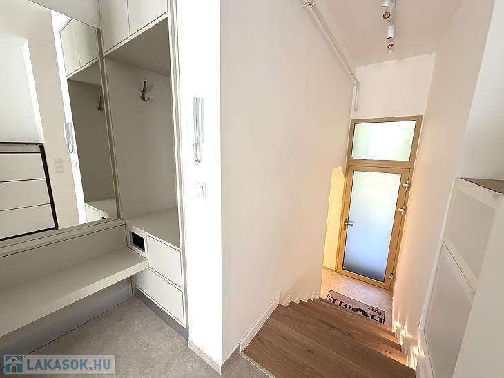 Pasaréti tértől pár percre, egyirányú kis mellékutcában, 8 lakásos házban eladó egy belső 2 szintes frissen, magas színvonalon felújított, DNY-i és DK-i fekvésű lakás.