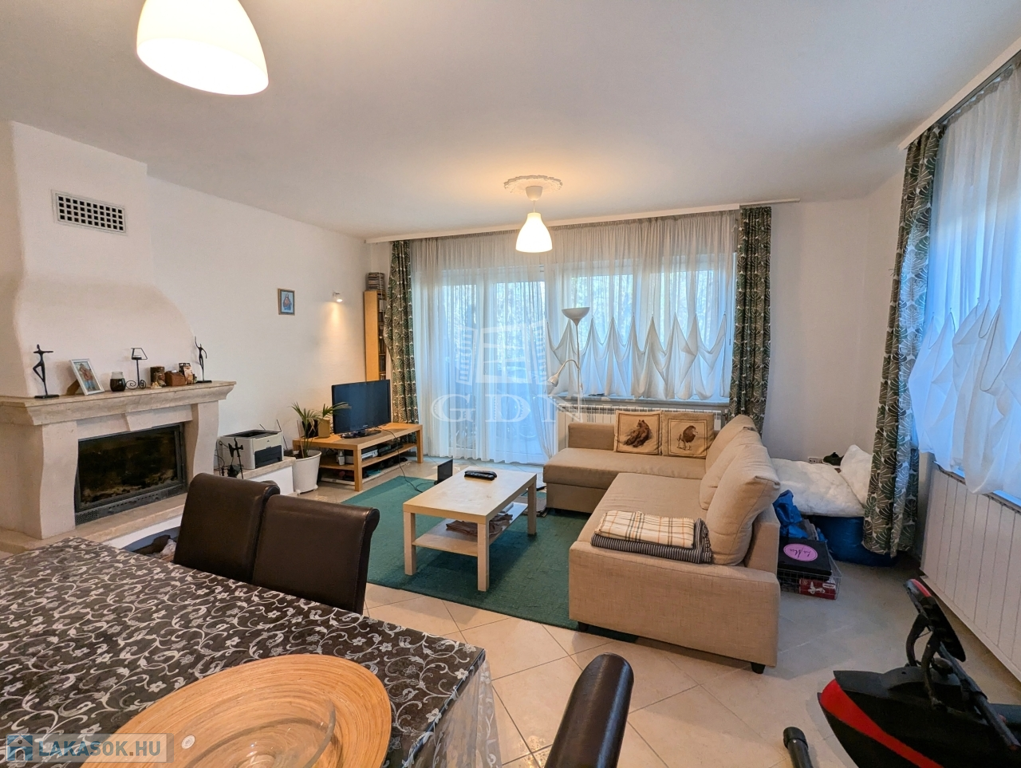 Csendes, zöld udvarra néző nappali és hálószoba